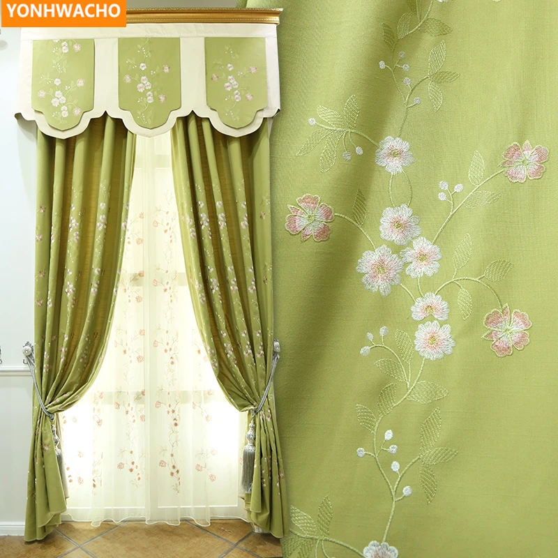 Home » best price , discount , home garden » New Custom curtains cotton linen embroidery elegant Chinese garden luxury green cloth blackout curtain