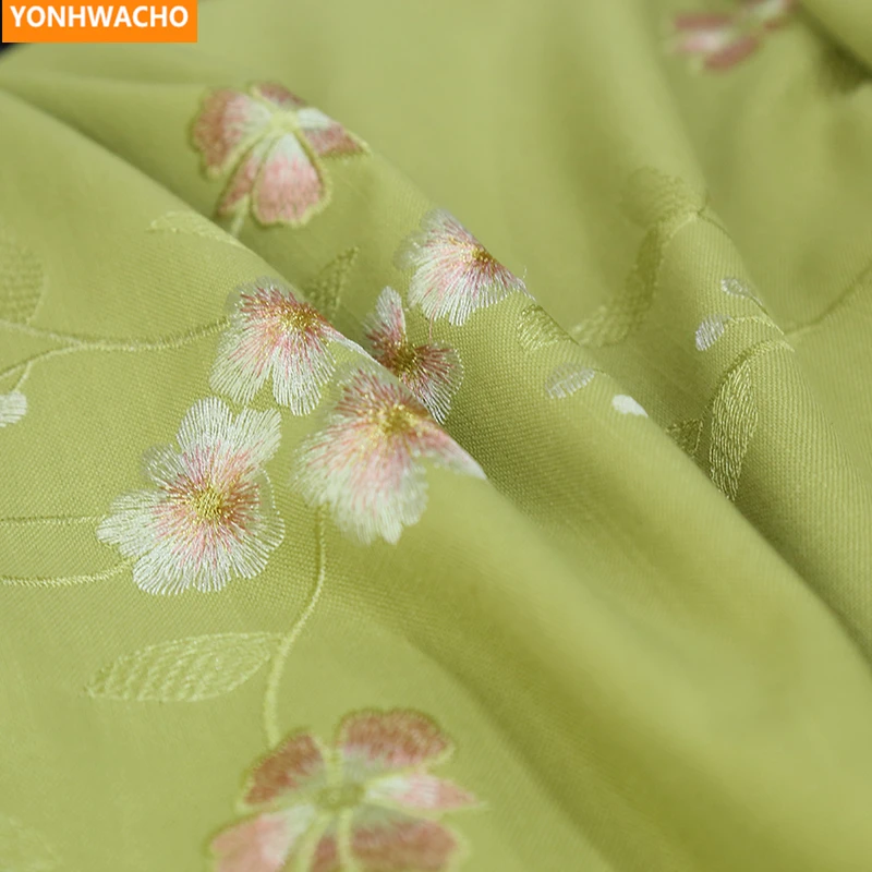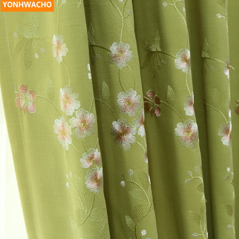 New Custom curtains cotton linen embroidery elegant Chinese garden luxury green cloth blackout curtain