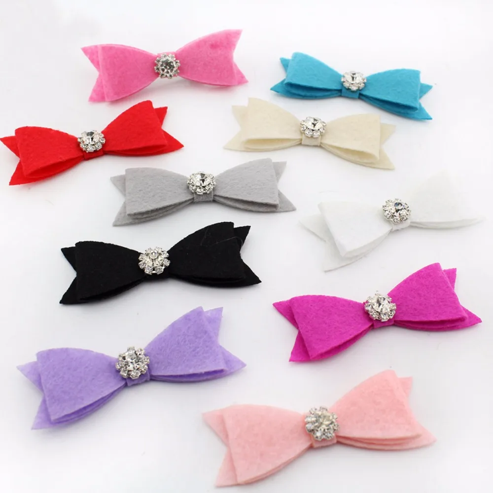 Best Price 20pcs/ lot Handmade non-woven fabrics bowknot with hair clip with rhinestone diamond DIY Apparel hair accessories