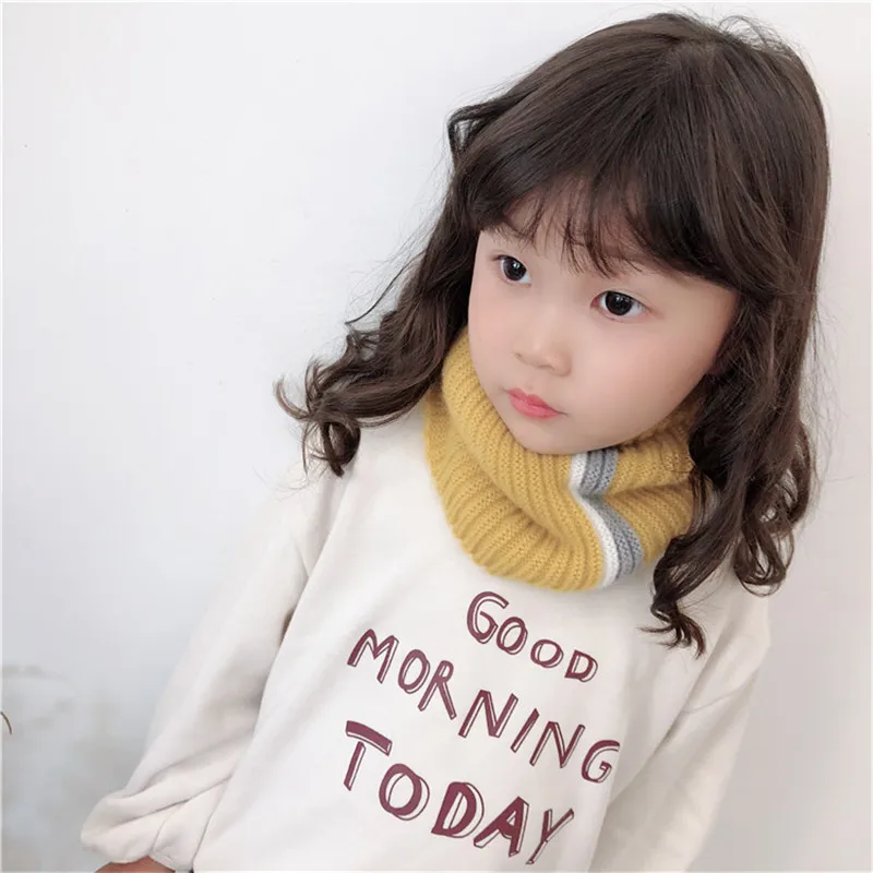 New Arrival Korea Handmade Wool Knit Patchwork Kids Children Girls Rings Scarf Wrap Shawl Fall Winter Apparel Accessories-OZKSF047C5