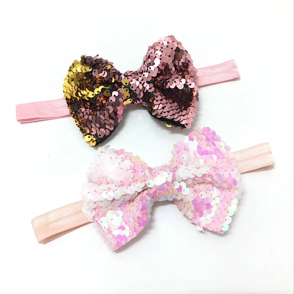 Cheap 25 pcs/lot 4'' sequin bow with 5/8'' elastic headband for headwear headband apparel accessories
